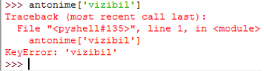 Mai mult, dacă un cuvânt cheie nu este regăsit în structura de date, va fi afișată o excepție / eroare: