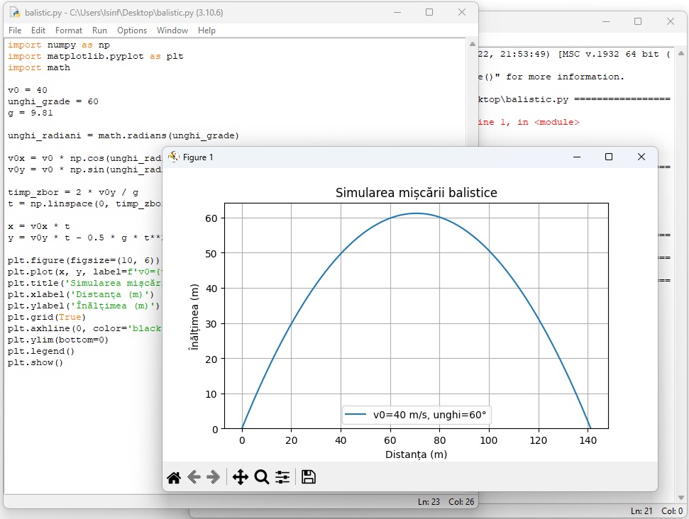 Titlul proiectului: "Simularea mișcării unui proiectil cu Python"