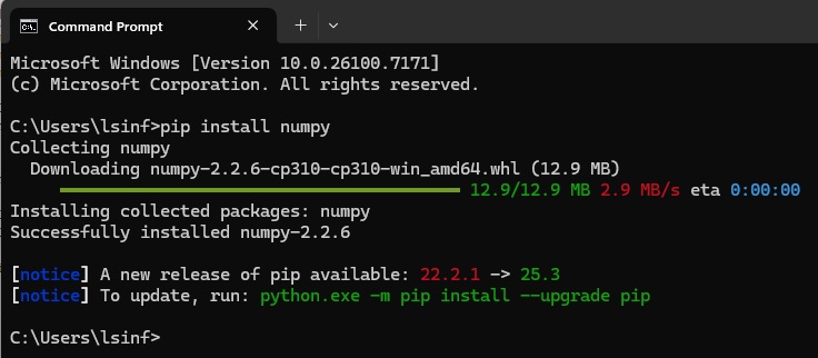 de operare Windows vom apela "pip install numpy" și apoi "pip install matplotlib":